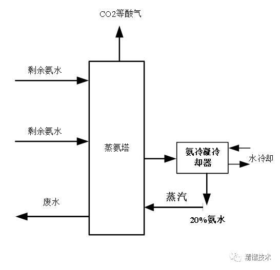 剩余氨水預先經過陶瓷過濾器過濾處理。進塔前分成兩股,其中一股從蒸氨塔上部的脫酸段進入另一股經進料預熱器預熱后進入蒸氨塔蒸餾脫氨段的上部。